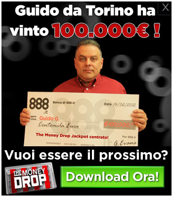 Guido, vince ben 100mila euro, dichiarandosi ancora stupido e incredulo per l'inaspettata vincita online, ringrazia il Casino Online 888. Il fortunato impiegato di Torino è riuscito a centrare il jackpot del sempre più noto gioco "The Money Drop", in questo caso in modalità online (diverso dal gioco reale). Un grande regalo per il giocatore, che ha avuto la fortuna di scegliere il Casino Online 888, una sala da gioco assolutamente legale, con una concessione AAMS, una delle migliori in Italia (e all'estero). The Money Drop online vi può far vincere fino a un milione di euro (come quello in TV).