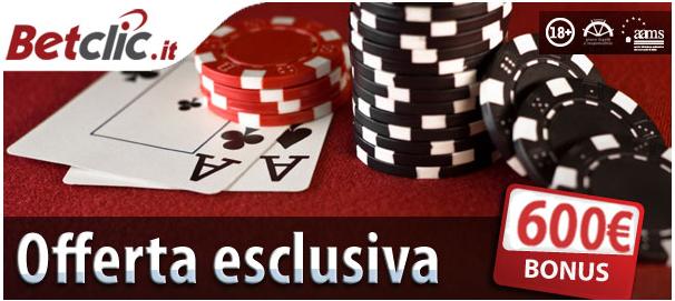 Registrati in modo gratuito su casino on line betclic ed effettua online il tuo primo versamento. Per iniziare a giocare a poker online basta depositare anche solo 10€, con carta di credito o Postepay.